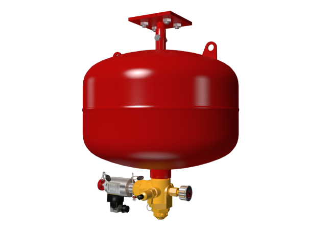 悬挂式全氟己酮气体灭火装置由灭火剂储瓶、容器阀、喷嘴、电磁型驱动装置、信号反馈装置、悬挂支架、压力表等组成,不需安装灭火剂输送管道,不需设置专用的储瓶间,采用悬挂或壁挂式安装,当火灾发生时,直接向防护区喷射灭火剂,灭火剂无管路损失,灭火速度更快、效率更高。装置具有自动、手动两种启动方式。