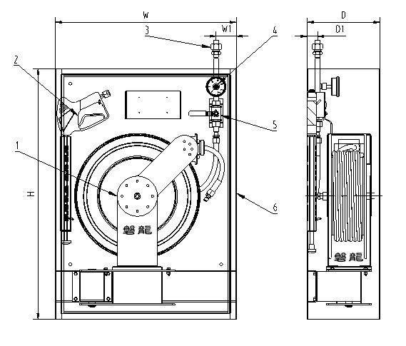 | 1.卷盘 | 2.细水雾喷枪 | 3.高压焊接式活接头(进水口) | 4.压力表 |